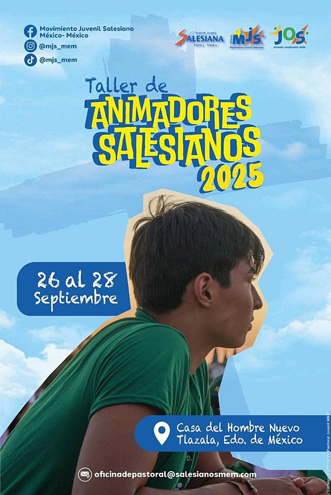 Ya faltan pocos días para que tenga lugar el Taller de Animadores Salesianos 2025, desde la oficina de Pastoral Juvenil de la Inspectoría Salesiana de Nuestra Señora de Guadalupe, la Pastoral Juvenil Inspectorial, el Movimiento Juvenil Salesiano de México-México (MJS-MEM), se reitera la atenta invitación a todos los interesados a participar.