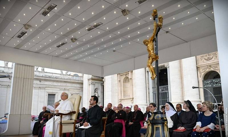 Además invito a quienes prestan servicio en el Vaticano a vivir esta oración en la Basílica de San Pedro, cada día, a las 19.00.