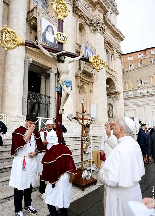 ‘Es verdad, ¡el Señor ha resucitado!’ (Cfr. v. 34). En este adverbio, ‘verdaderamente’, se cumple el destino seguro de nuestra historia como seres humanos. No por casualidad es el saludo que los cristianos se intercambian el día de Pascua. Jesús no resucitó con palabras, sino con hechos, con su cuerpo que conserva las marcas de la pasión, sello perenne de su amor por nosotros. La victoria de la vida no es una palabra vana, sino un hecho real, concreto.