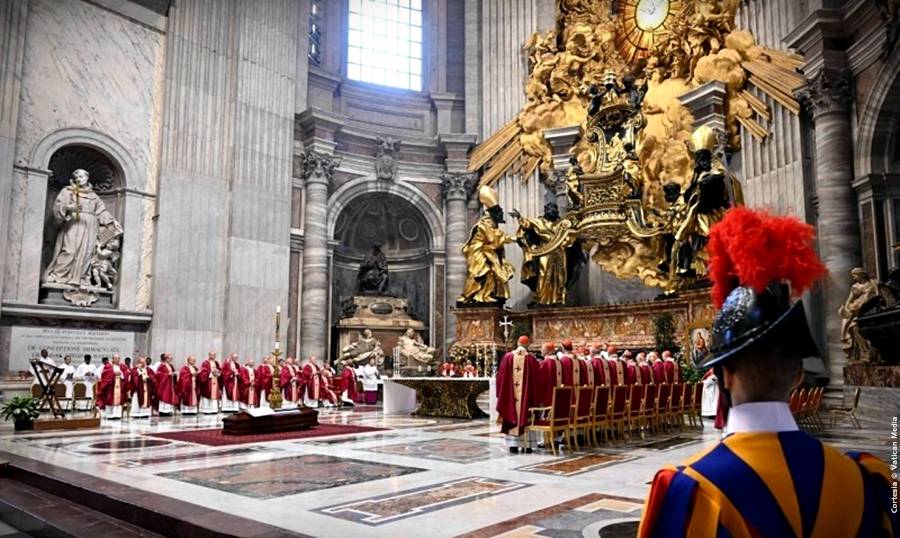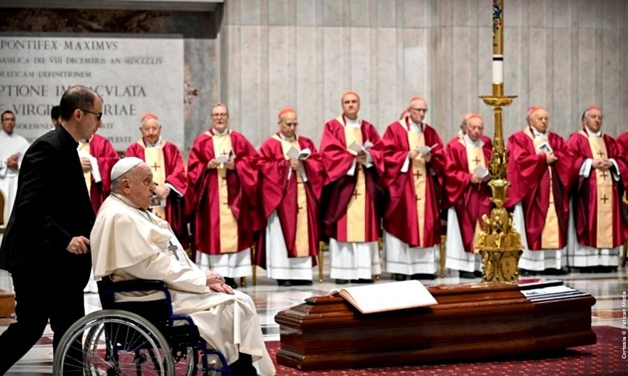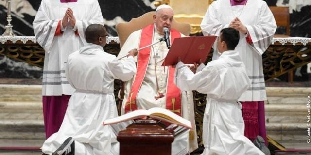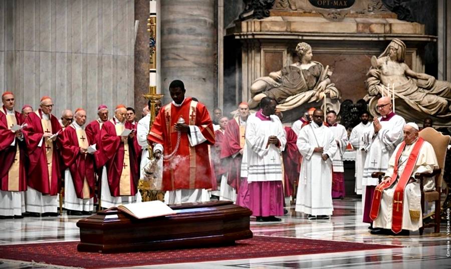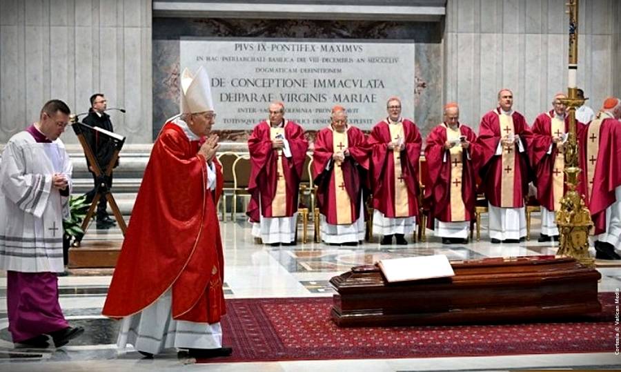 La ceremonia de Exequias tuvo lugar el jueves 2 de enero de 2025, a las 14 horas, en la Capilla Papal presidió el Santo Padre Francisco, en la sede del ‘Altar de la Cátedra’ de la Basílica de San Pedro, la liturgia fúnebre fue celebrada por el cardenal Giovanni Battista Re, Decano del Colegio Cardenalicio; estuvieron presentes cardenales, arzobispos y obispos.