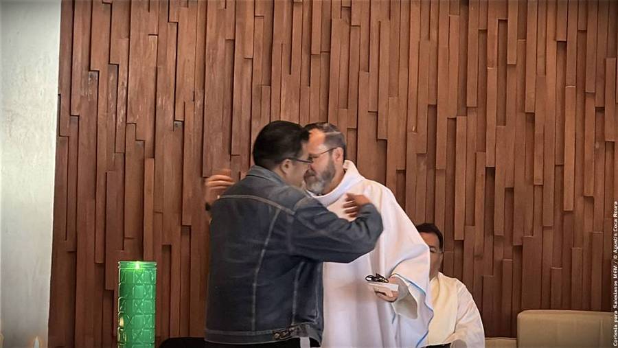Casi para finalizar la Misa el Sr. Francisco Cabrera de la Oficina del PJ de MEM y animador del MJS, entregó un presente al Padre Ignacio con motivo de los años de servicio como superior de MEM de parte del todos los integrantes de MJS-MEM.