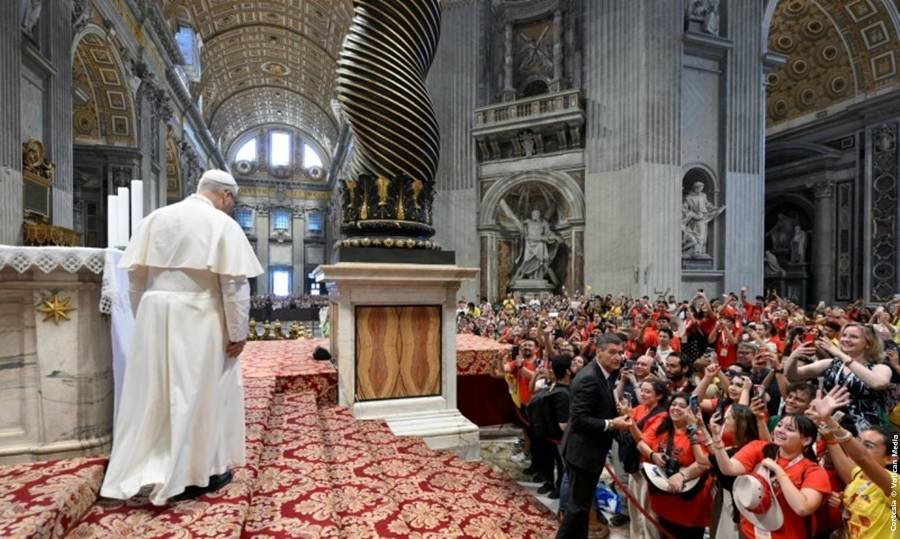 3. Y esto nos lleva a un tercer llamado y por eso les hago un llamado a todos ustedes: ‘que vayan a reparar las redes’. Jesús llamó a sus primeros apóstoles mientras reparaban sus redes de pescadores (Cfr. Mt 4,21-22). También lo pide a nosotros, es más, nos pide hoy construir otras redes: redes de relaciones, redes de amor, redes de intercambio gratuito, en las que la amistad sea auténtica y sea profunda. Redes donde se pueda reparar lo que ha sido roto, donde se pueda poner remedio a la soledad, sin importar el número de los seguidores -los follower-, sino experimentando en cada encuentro la grandeza infinita del Amor. Redes que abran espacio al otro, más que a sí mismos, donde ninguna ‘burbuja de filtros’ pueda apagar la voz de los más débiles. Redes que liberen, redes que salven. Redes que nos hagan redescubrir la belleza de mirarnos a los ojos. Redes de verdad. De este modo, cada historia de bien compartido será el nudo de una única e inmensa red: la red de redes, la red de Dios.