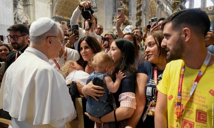 La mañana del martes, 29 de julio de 2025, en la Basílica de San Pedro del Vaticano, el Santo Padre León XIV dirigió un saludo a los influencers y misioneros digitales con ocasión de su Jubileo, tras hacer el saludo de la paz de cristo, el Papa destacó que se le confiaba la misión de la Iglesia de anunciar la paz del Señor resucitado al Mundo, el reto de garantizar una cultura en Internet que siga siendo humana, buscando “la carne sufriente de Cristo” en cada persona con las que se encuentren en la web y un tercer llamado que les dirigió fue el de ir a “reparar las redes” como Jesús lo hizo con sus apóstoles al encontrarse con ellos. Además el Pontífice exhortó a los influencers a centrarse en Cristo y a vencer la lógica del mundo con la belleza y la luz de la verdad.