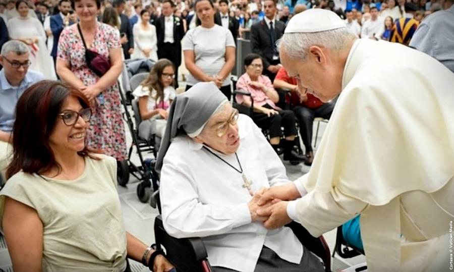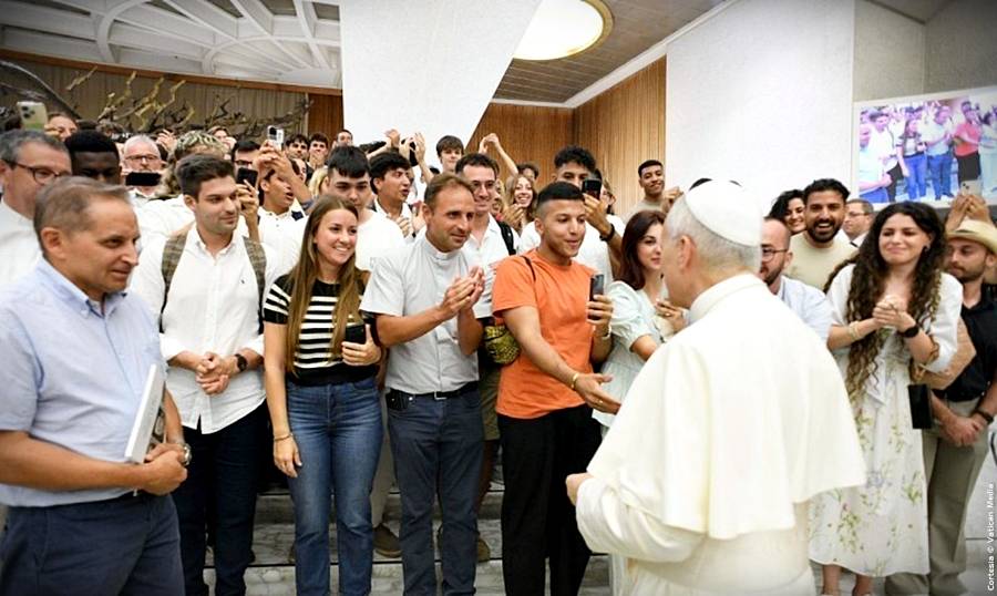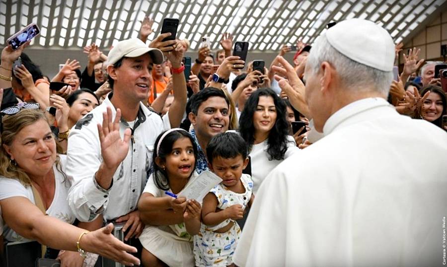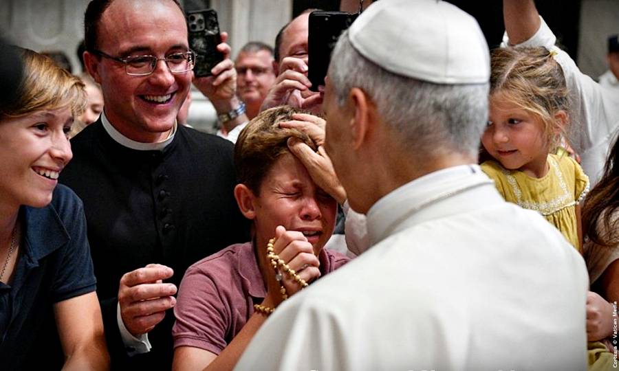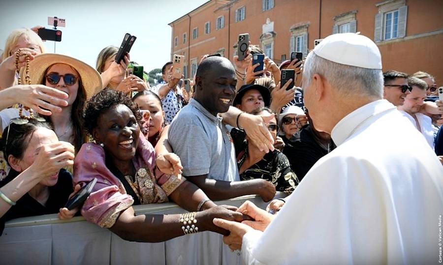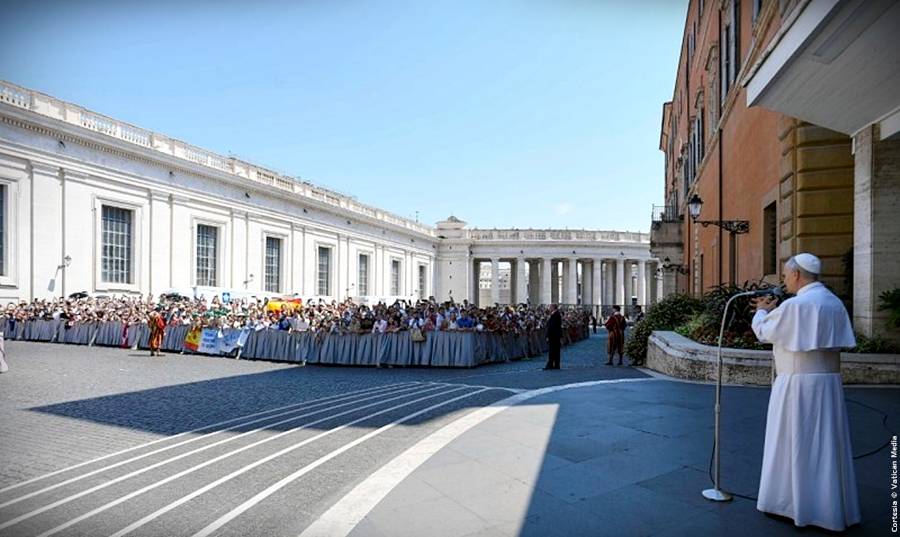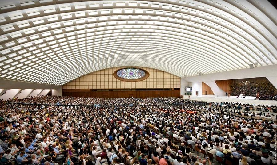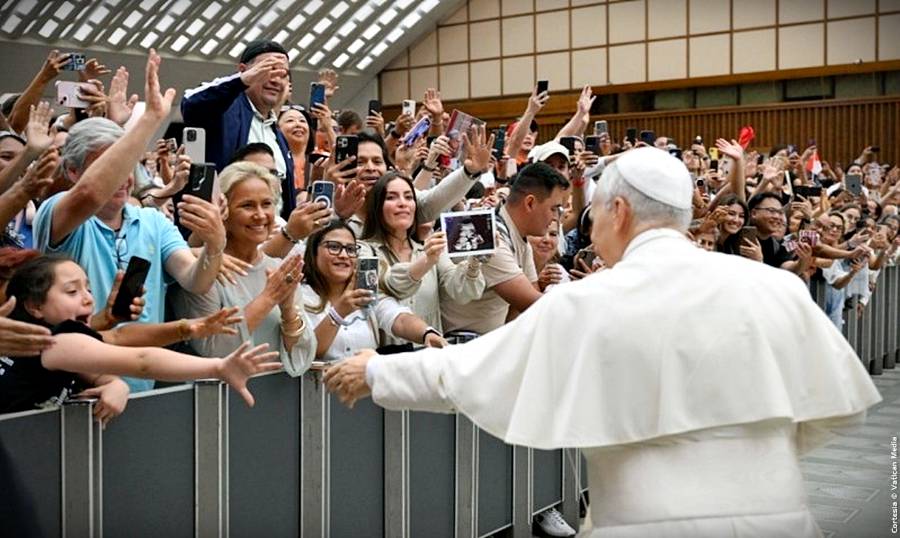 Cabe subrayar que el Papa saludó a los peregrinos reunidos en el exterior del Aula Pablo VI, en el Patio Petriano, y después se dirigió a la Basílica Vaticana para saludar a quienes no consiguieron asiento en el Aula y seguían la audiencia a través de pantallas dispuestas en las diversas zonas del Vaticano.