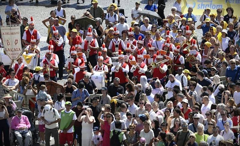 Saludo también a la Fraternidad Laical de las Hermanas Dimesse de Padua, a los jóvenes de Acción Católica y de AGESCI de Reggio Calabria, a los jóvenes de Gorla Maggiore y a los confirmandos de Castel San Pietro Terme; así como al Movimiento Shalom de San Miniato con la Filarmónica Angiolo del Bravo, a la Asociación ‘Note libere’ de Taviano y al grupo ‘Genitori Orsenigo’.