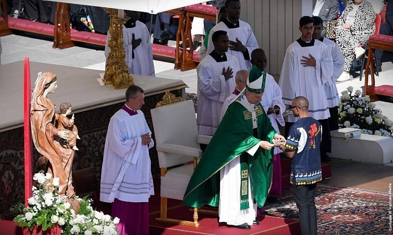 Las palabras de Jesús nos comunican cómo Dios contempla el mundo, en cada tiempo y en cada lugar. En el Evangelio que hemos escuchado (Lc 16,19-31), sus ojos observan a un pobre y a un rico, el que muere de hambre y el que engulle frente a él; ven la vestimenta elegante de uno y las llagas del otro, lamidas por los perros (Cfr. Lc 16,19-21). Pero no sólo eso: el Señor mira el corazón de los hombres y, a través de sus ojos, nosotros reconocemos a un indigente y a un indiferente. Lázaro es olvidado por quien está frente a él, justo después de la puerta de su casa; sin embargo, Dios está cerca suyo y recuerda su nombre. El hombre que vive en la abundancia, en cambio, no tiene nombre, porque se pierde a sí mismo, olvidándose del prójimo. Está disperso en los pensamientos de su corazón, lleno de cosas y vacío de amor. Sus bienes no lo hacen bueno.