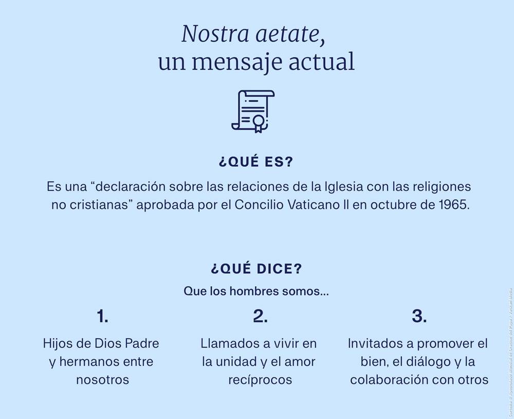 El Papa León XIV nos invita a orar para que creyentes de distintas tradiciones religiosas trabajemos juntos para defender y promover la paz, la justicia y la fraternidad humana. Esto lo hace en el contexto donde se cumplen –en este mes de octubre- 60 años de la publicación del documento eclesial Nostra Aetate del Concilio Vaticano II, que aborda las relaciones de la Iglesia con las religiones no cristianas, y que nos recuerda los vínculos espirituales del Pueblo del Nuevo Testamento unido con la raza de Abraham. El Santo padre pide para que “Que las religiones sean fermento de unidad en un mundo fragmentado”.