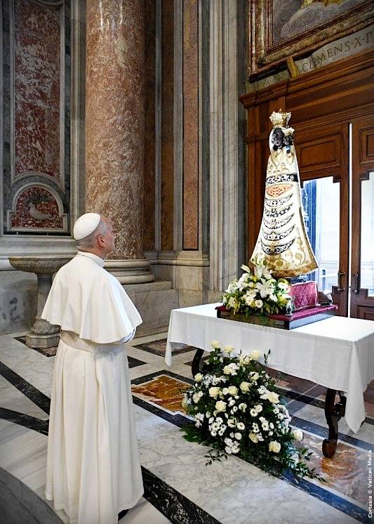 El camino de María va tras el de Jesús, y el de Jesús es hacia cada ser humano, especialmente hacia los pobres, los heridos, los pecadores. Por eso, la auténtica espiritualidad mariana hace actual en la Iglesia la ternura de Dios, su maternidad. ‘Porque -como leemos en la Exhortación apostólica Evangelii gaudium- cada vez que miramos a María volvemos a creer en lo revolucionario de la ternura y del cariño. En ella vemos que la humildad y la ternura no son virtudes de los débiles sino de los fuertes, que no necesitan maltratar a otros para sentirse importantes. Mirándola descubrimos que la misma que alababa a Dios porque ‘derribó de su trono a los poderosos’ y ‘despidió vacíos a los ricos’ (Lc 1,52.53) es la que pone calidez de hogar en nuestra búsqueda de justicia’ (n. 288).