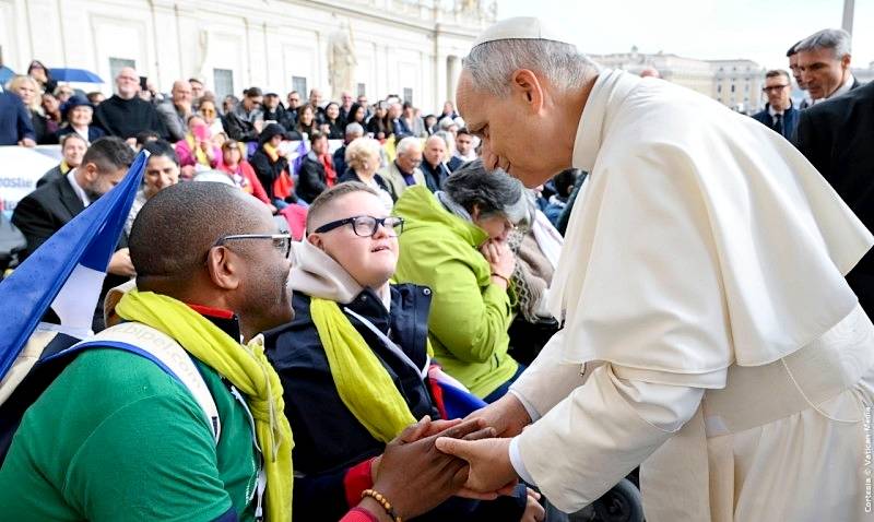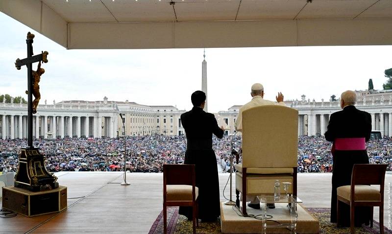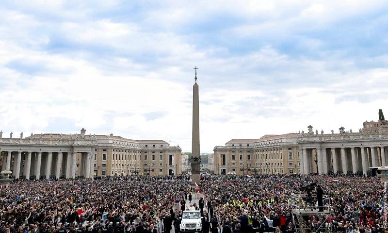 ‘Es verdad, ¡el Señor ha resucitado!’ (Cfr. v. 34). En este adverbio, ‘verdaderamente’, se cumple el destino seguro de nuestra historia como seres humanos. No por casualidad es el saludo que los cristianos se intercambian el día de Pascua. Jesús no resucitó con palabras, sino con hechos, con su cuerpo que conserva las marcas de la pasión, sello perenne de su amor por nosotros. La victoria de la vida no es una palabra vana, sino un hecho real, concreto.