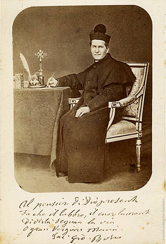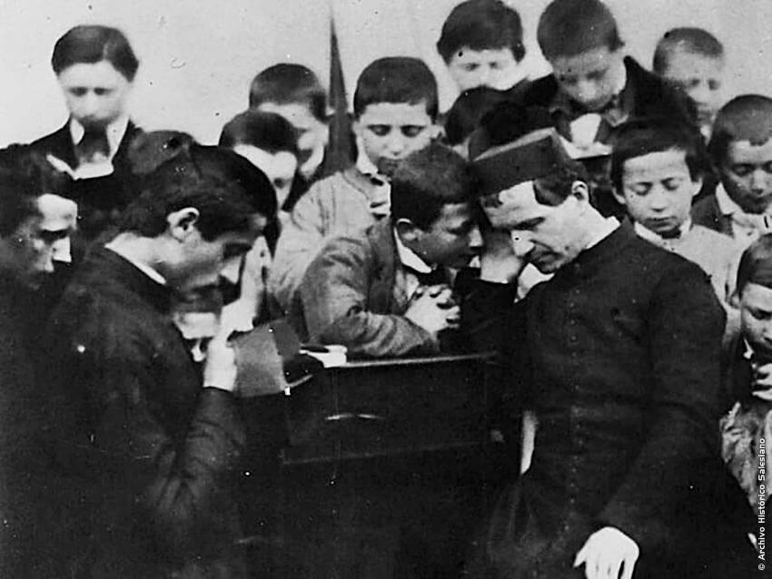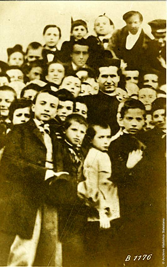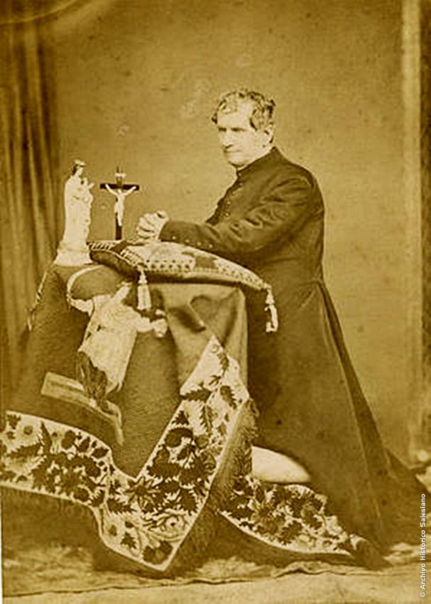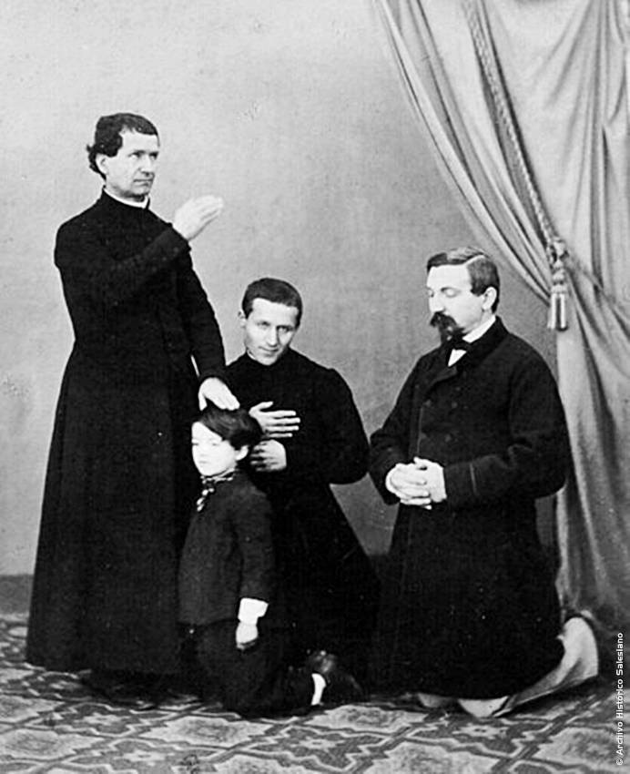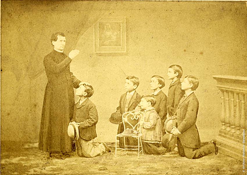 1841/ diciembre/8: Don Bosco tiene un encuentro peculiar, con un joven en situación vulnerable, huérfano de padre y madre a los 16 años, llamado Bartolomé Garelli, quien fue maltratado por un clérigo sacristán por no saber acolitar para la misa. Con el buen trato de Don Bosco, se gana la simpatía del chico, quien decide aceptar la oferta de ser preparado en la catequesis por aquel sacerdote quien le llamó 'amigo'. El santo sacerdote atribuyó el nacimiento de la obra salesiana a ese acto desinteresado y al Ave María que rezo con él chico que al poco tiempo hizo su primera comunión y que invitaba a todos los chicos que se encontraba, para que asistieran a las clases que impartía aquel joven sacerdote.