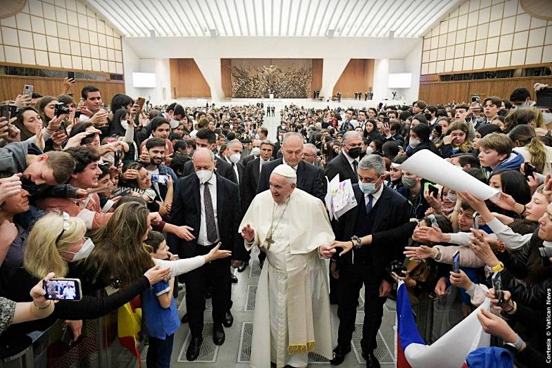 El Papa Francisco presidió la Audiencia General del Miércoles Santo, el día 13 de abril de 2022 iniciando su encuentro con fieles y peregrinos a las 9:15 hrs. -tiempo de Roma- Se ha centrado en el tema de la ‘Paz de Pascua”, comentado algunos pasajes del Evangelio de San Juan (Lectura: Jn 14,27)’, reflexión obligada dado lo cercano del Triduo Pascual y la ya próxima celebración de la Fiesta de todas la Fiestas.