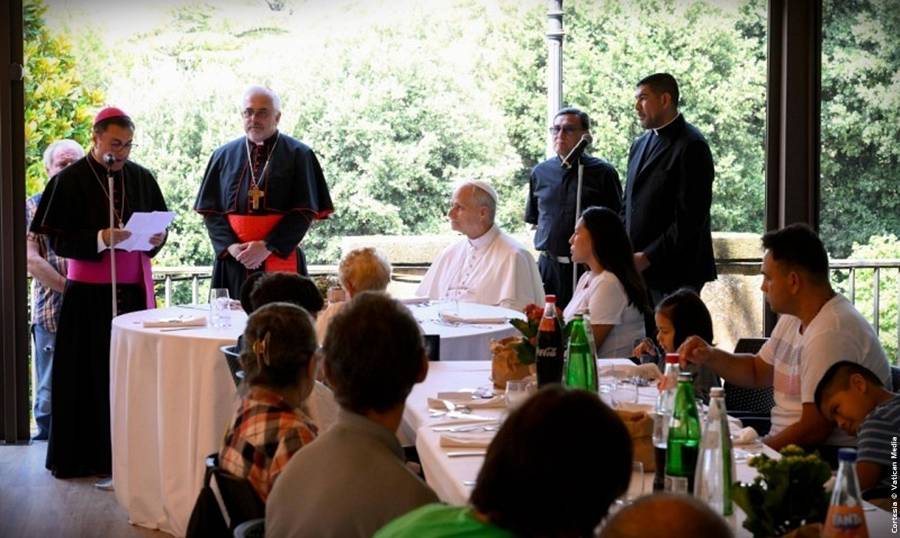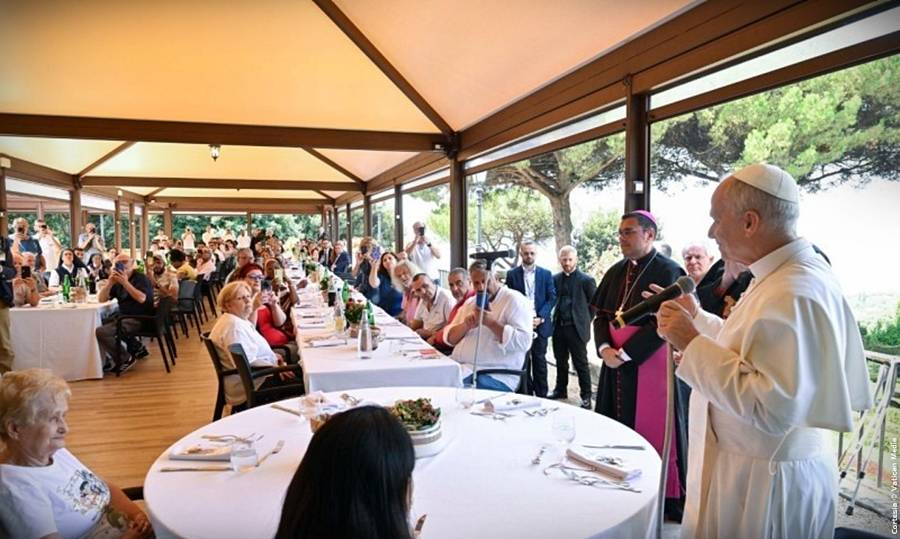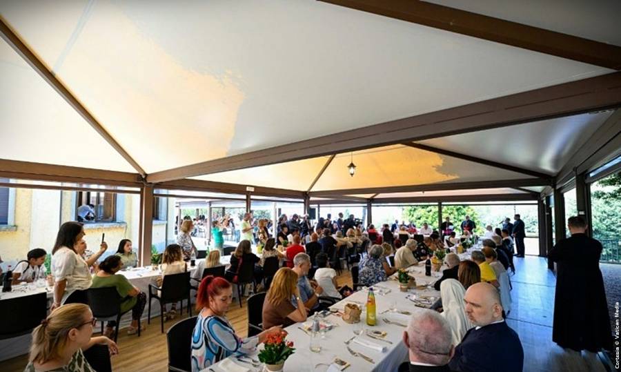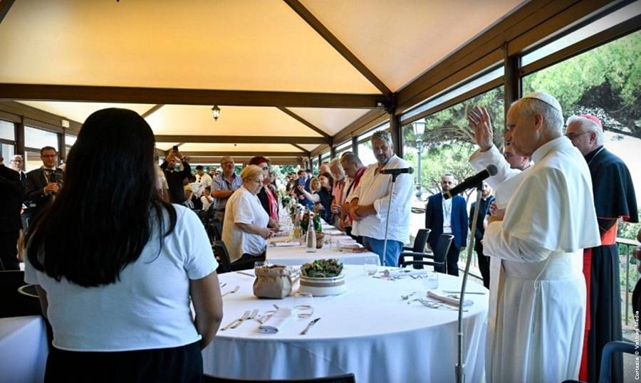 El XX Domingo del Tiempo Ordinario, 17 de agosto de 2025, en Jardines de las Villas Pontificias de ‘Castelgandolfo e la Villa Laudato si’ ‘, el Papa León XIV participó en una comida con los pobres que asiste la Diócesis de Albano y con los trabajadores de Cáritas Diocesana de la localidad, ha todos ellos les ha recordado que todos hemos sido creados a imagen y semejanza de Dios, y enfatizó que comer juntos es un acto de unidad y amor.
