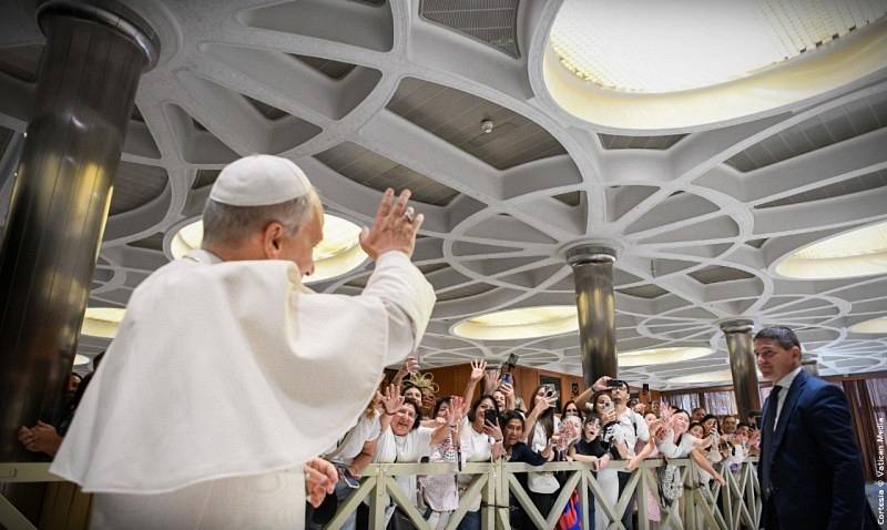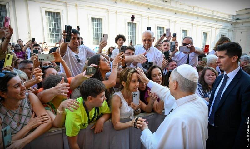 La Audiencia General concluyó con el rezo del Padrenuestro y la Bendición Apostólica. Después, el Papa se detuvo a saludar a los peregrinos que no encontraban asiento en el Aula Pablo VI, reunidos en el patio Petriano y en el interior de la Basílica Vaticana.