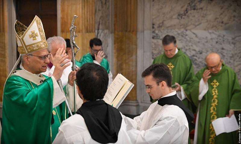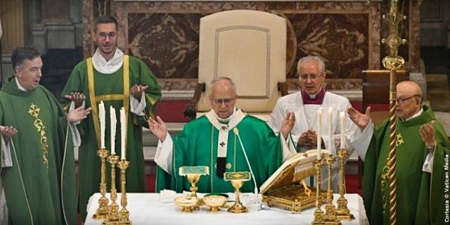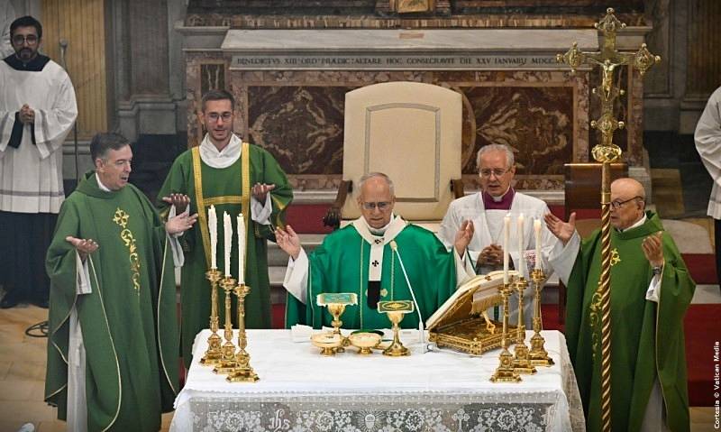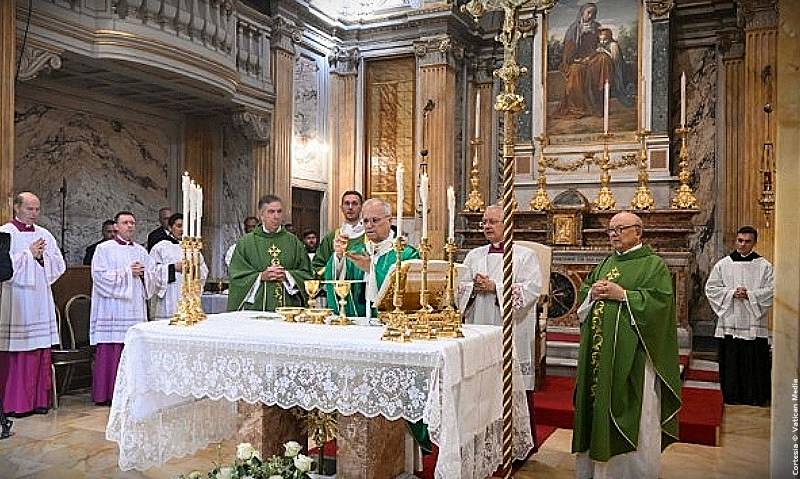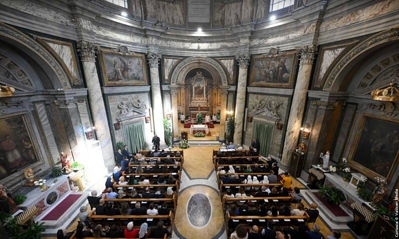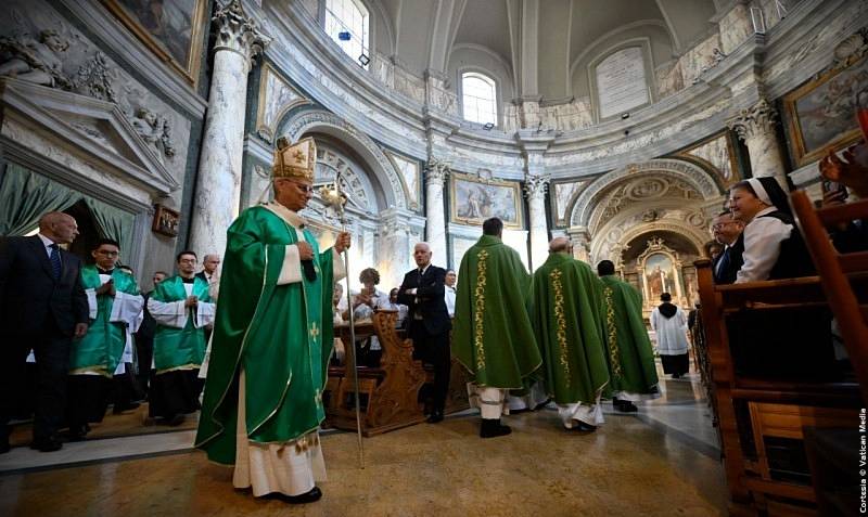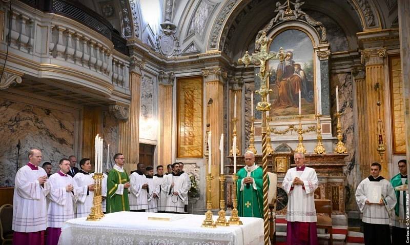 Estoy particularmente contento de presidir esta Eucaristía en la Parroquia Pontificia de Santa Ana. Saludo con gratitud a los religiosos agustinos que prestan servicio aquí, en particular al párroco, p. Mario Millardi, así como al nuevo Prior General de la Orden, que nos acompaña hoy, padre Joseph Farrell; y también deseo saludar al padre Gioele Schiavella, quien recientemente celebró la venerable edad de ciento tres años.