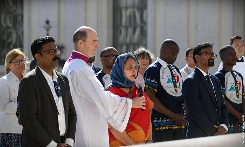 En este sentido, ustedes catequistas son esos discípulos de Jesús que se convierten en sus testigos. El nombre del ministerio que llevan adelante proviene del verbo griego katechein, que significa instruir de viva voz, hacer resonar. Eso quiere decir que el catequista es una persona de palabra, una palabra que pronuncia con su propia vida. Por eso los primeros catequistas son nuestros padres, aquellos que hablaron con nosotros primero y nos enseñaron a hablar. Así como aprendimos nuestra lengua materna, del mismo modo el anuncio de la fe no puede delegarse a otros, sino que se realiza allí donde vivimos, principalmente en nuestras casas, alrededor de la mesa. Cuando hay una voz, un gesto, un rostro que lleva a Cristo, la familia experimenta la belleza del Evangelio.