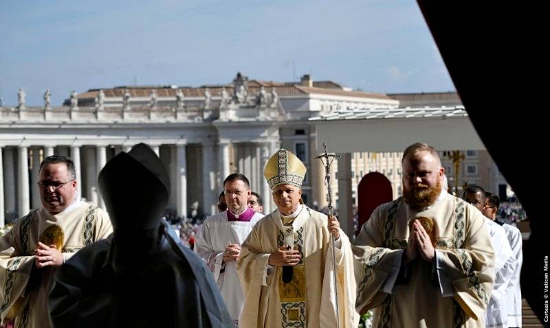 Plaza de San Pedro, Domingo, 19 de octubre de 2025, tras la ceremonia de Canonización de 7 beatos y beatas,el Papa León XIV dirigió un cálido saludo a los presentes tras la celebración de la canonización de siete beatos, agradeciendo especialmente a los cardenales, patriarcas, obispos y delegaciones oficiales de Italia, Líbano, Armenia y Venezuela. Reconoció con alegría a las hijas espirituales de los nuevos santos y a las comunidades inspiradas por sus carismas.