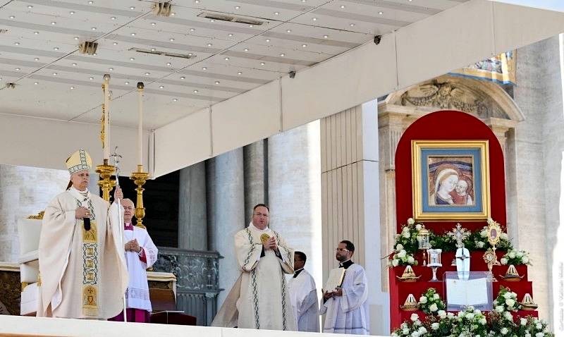 Finalmente, invocó la intercesión de la Virgen María y de los nuevos santos para que Dios conceda sabiduría a los líderes en la búsqueda de una paz justa y duradera, especialmente en lugares como Tierra Santa y Ucrania.