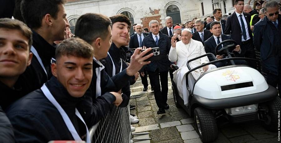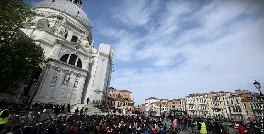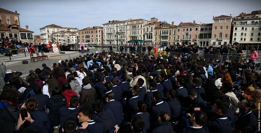 Me parece oír tu objeción: ‘No es fácil, padre, ¡parece que vas contracorriente!’. Pero ustedes no pueden decir esto aquí en Venecia, porque Venecia nos dice que sólo remando con constancia se llega lejos. Si son ciudadanos venecianos, ¡aprendan a remar con constancia para llegar lejos! Por supuesto, remar requiere regularidad; pero la constancia recompensa, aunque cueste esfuerzo. Así que, chicos y chicas, esto es levantarse: ¡dejar que Dios te lleve de la mano para caminar juntos!