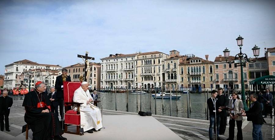 Dios sabe que, además de bellos, somos frágiles, y las dos cosas van juntas: un poco como Venecia, que es espléndida y delicada al mismo tiempo. Es hermosa y delicada, tiene algunas fragilidades que deben cuidarse. Dios no ata nuestros errores en su dedo: ‘Hiciste eso, hiciste...’. No se ata a esto, sino que nos tiende la mano. ‘Pero, Padre, tengo muchas, muchas cosas de las que me avergüenzo’. ¡Pero no te mires a ti, ¡mira la mano que Dios te tiende para levantarte! No lo olvides: si te sientes agobiado por tu conciencia, mira al Señor y deja que te lleve de la mano. Cuando estamos abatidos, Él ve hijos a los que levantar, no malhechores a los que castigar. Por favor, ¡confiemos en el Señor! Esto se está haciendo un poco largo, ¿Se están aburriendo? (respuesta: ‘¡No!’) ¡Son educados, de acuerdo!