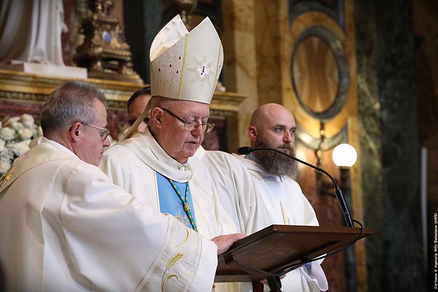 Tras la bendición de los niños que realizó el p. Guido Dutto párroco del santuario, la primera Misa vespertina, fue presidida por S.E.R. Monseñor Cesare Nosiglia, Arzobispo emérito de Turín.