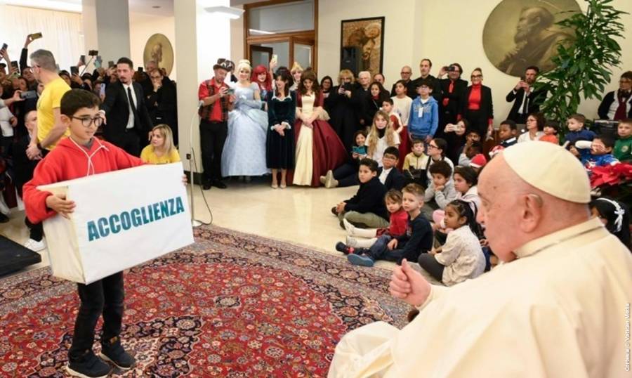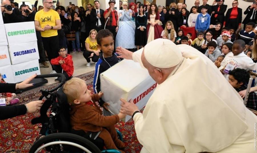 Esta mañana he tenido la alegría de estar con los niños, con sus madres, que acuden al Dispensario Santa Marta, en el Vaticano, dirigido -aquí en el Vaticano- por las Hermanas Vicentinas, ¡qué buenas religiosas son! Entre ellas hay una hermana que es como la abuela de todo, la buena sor Antonietta, a la que recuerdan con tanto amor. Y a mí, tantos niños que había, me han llenado el corazón de alegría. Repito: ‘¡Ningún niño es un error!’.