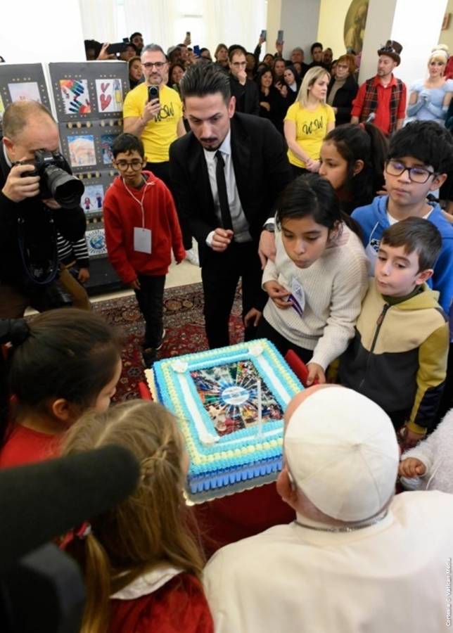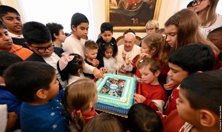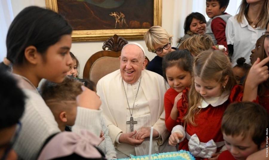 Esta mañana, en Casa Santa Marta, el Santo Padre Francisco recibió en audiencia a los niños atendidos en el Dispensario Pediátrico "Santa Marta" del Vaticano junto con sus familias. Los jovencitos celebraron el cumpleaños del Papa y la llegada de la Navidad. A continuación la fiesta continuó en el Atrio del Aula Pablo VI . Posteriormente, a las 12 hrs, desde la Capilla de la Casa Santa Marta, el Santo Padre dirigió el rezo del Ángelus.