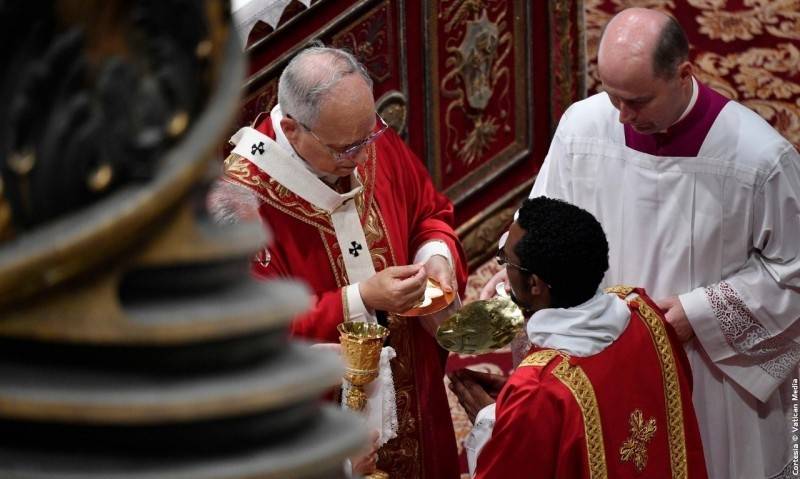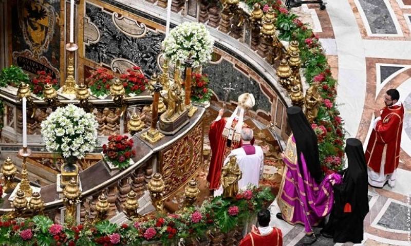 Queridos hermanos, la historia de Pedro y Pablo nos enseña que la comunión a la que el Señor nos llama es una armonía de voces y rostros, no anula la libertad de cada uno. Nuestros patronos han recorrido caminos diferentes, han tenido ideas diferentes, a veces se enfrentaron y discutieron con franqueza evangélica. Sin embargo, eso no les impidió vivir la concordia apostolorum, es decir, una viva comunión en el Espíritu, una fecunda sintonía en la diversidad. Como afirma san Agustín: ‘En un solo día celebramos la pasión de ambos apóstoles. Pero ellos dos eran también una unidad; aunque padeciesen en distintas fechas, eran una unidad’ (Sermón 295, 7).