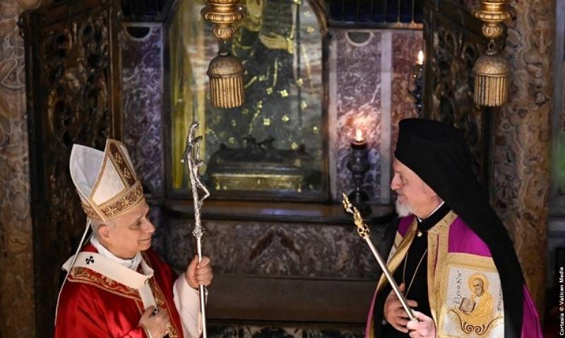 Y con viva gratitud saludo a la Delegación del Patriarcado Ecuménico, que ha sido enviada por el querido hermano Su Santidad Bartolomé.