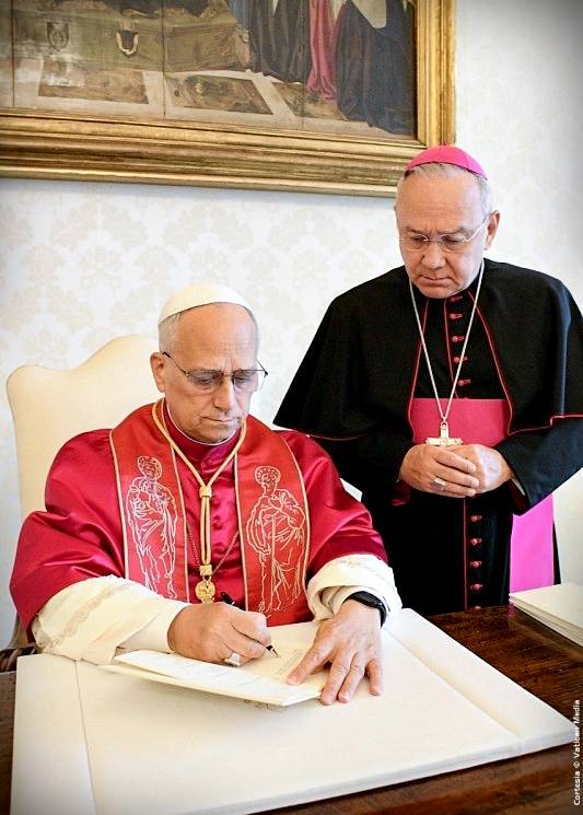Esta mañana, 4 de octubre de 2025, a las 0, el Santo Padre ha firmado la Exhortación Apostólica Dilexi te, en presencia de S.E. Monseñor Edgar Peña Parra, sustituto para los Asìstos Generales de la Secretaría de Estado. El documento se presentará el próximo 9 de octubre de 2025, a las 11:30, en la Oficina de Prensa de la Santa Sede.