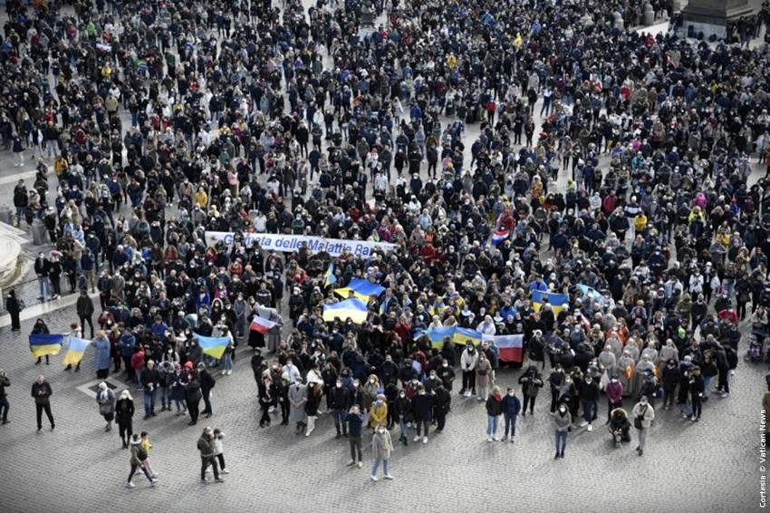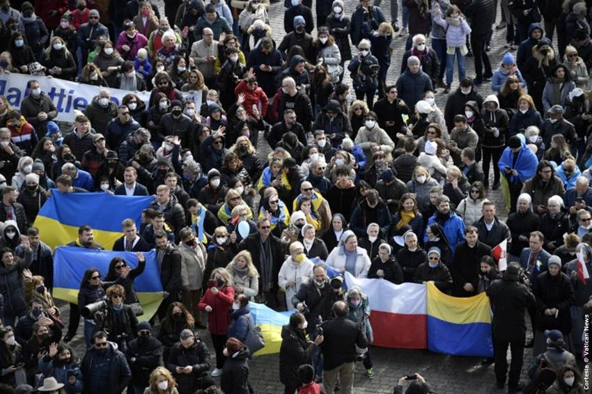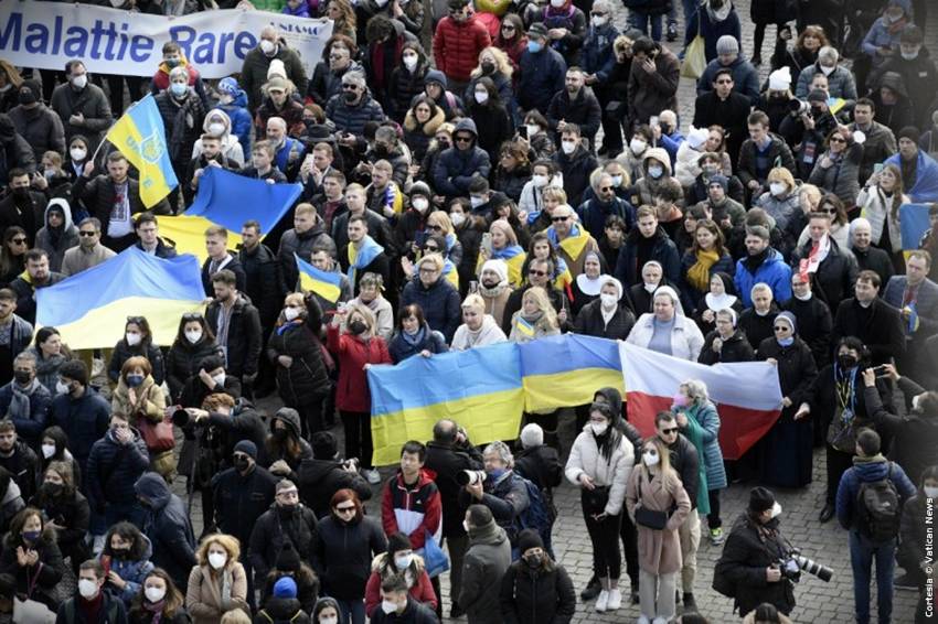 En estos días hemos sido turbados por algo trágico: la guerra. Numerosas veces hemos rezado para que no se emprendiera este camino. No dejemos de orar, es más, supliquemos a Dios con mayor intensidad. Por eso renuevo a todos la invitación a vivir el 2 de marzo, Miércoles de Ceniza, un día de oración y ayuno por la paz en Ucrania; una jornada para estar cerca de los sufrimientos del pueblo ucraniano, para sentirnos todos hermanos e implorar a Dios el final de la guerra.