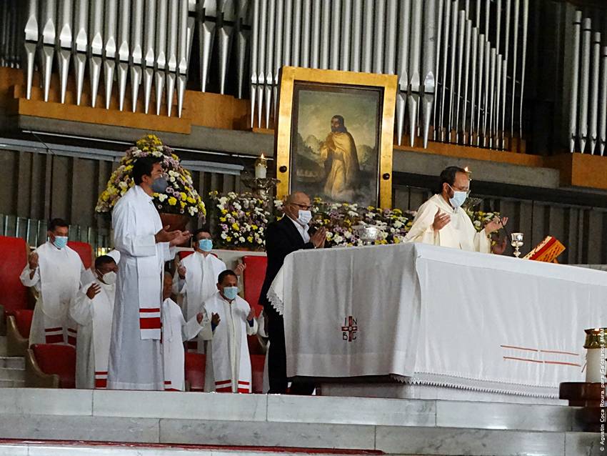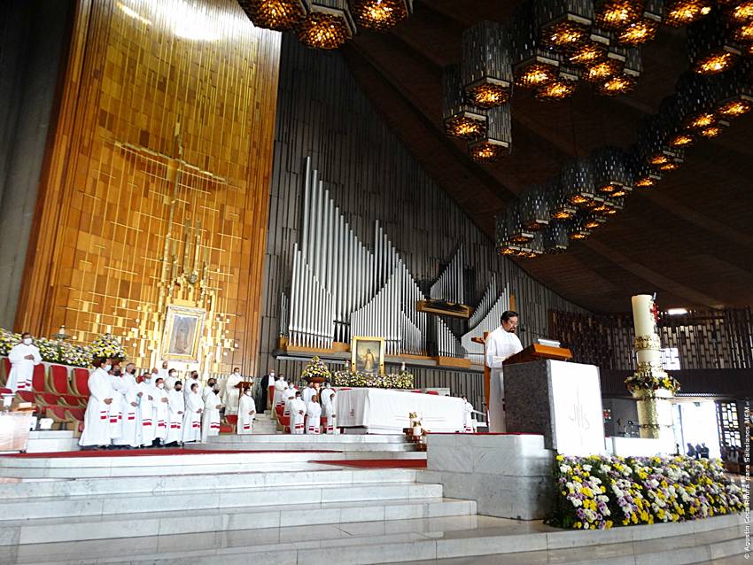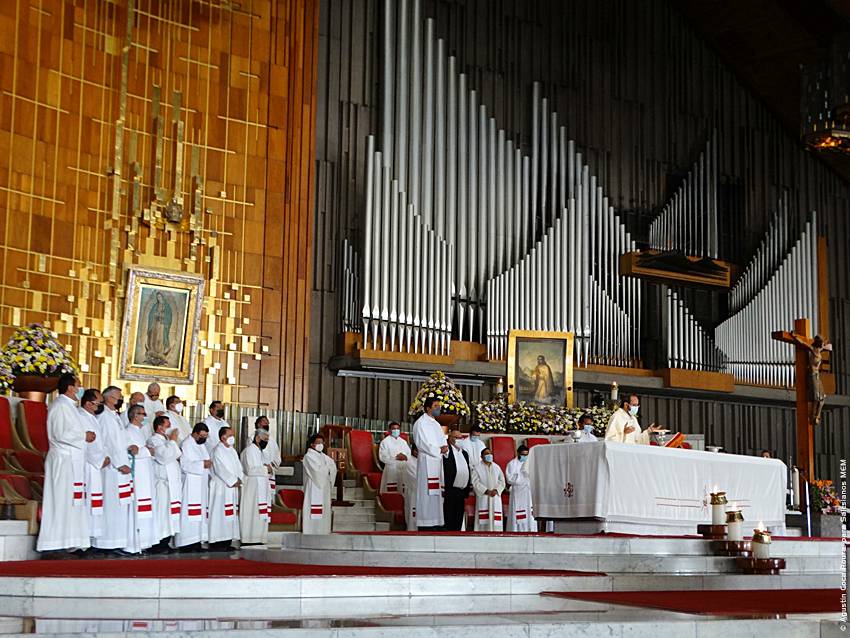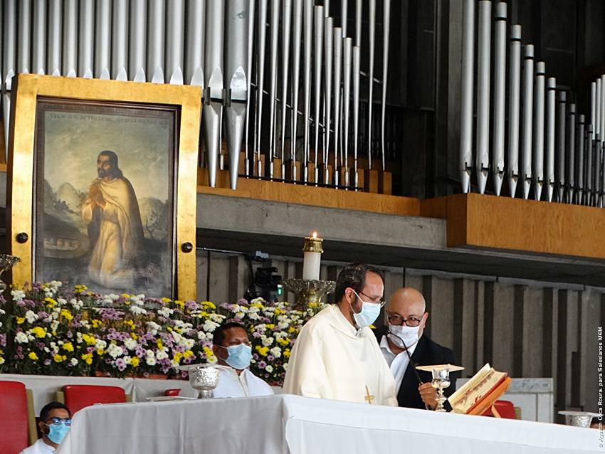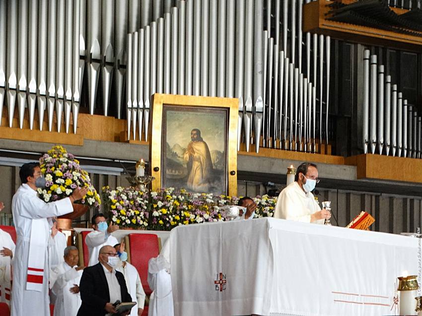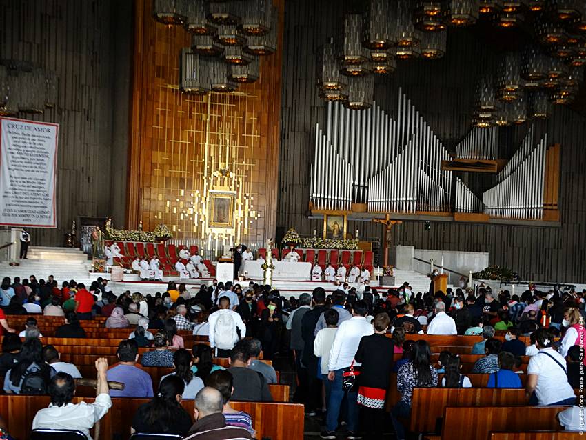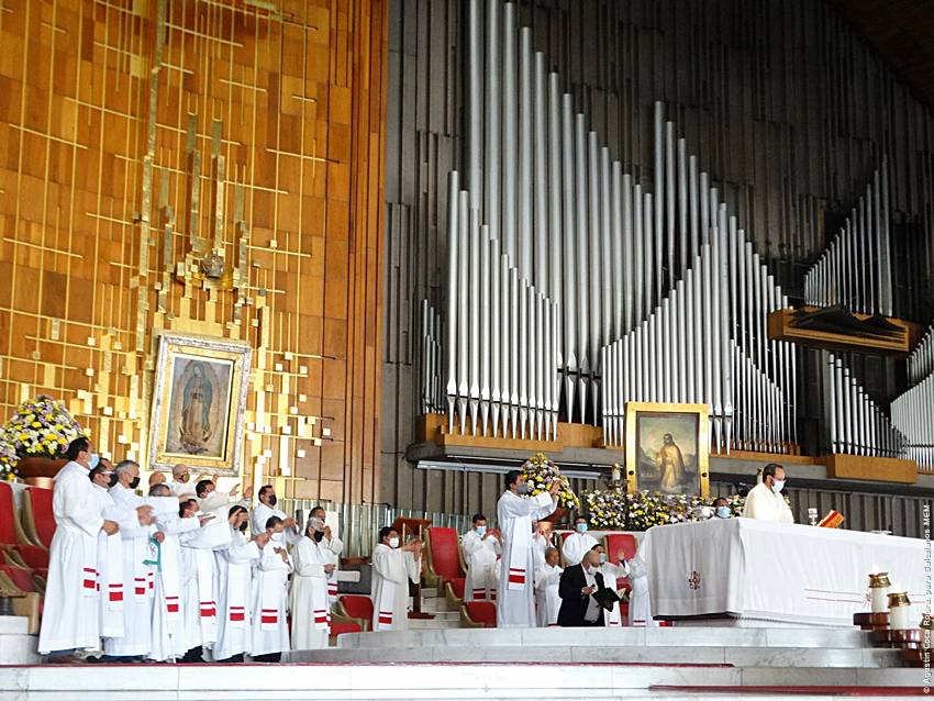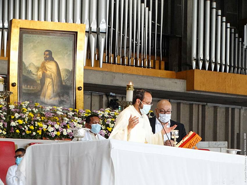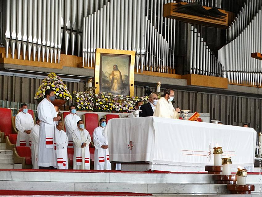 Cerca de las 10:10 y tras congregarse en la explanada de la Basílica, las diversas delegaciones de los grupos iniciaron su ingreso al santuario mariano, a las 10:30 inicio la Solemne Misa, misma que fue presidida por el Padre Ignacio Ocampo.
