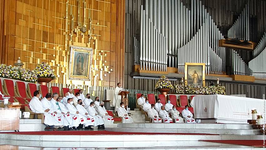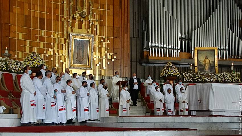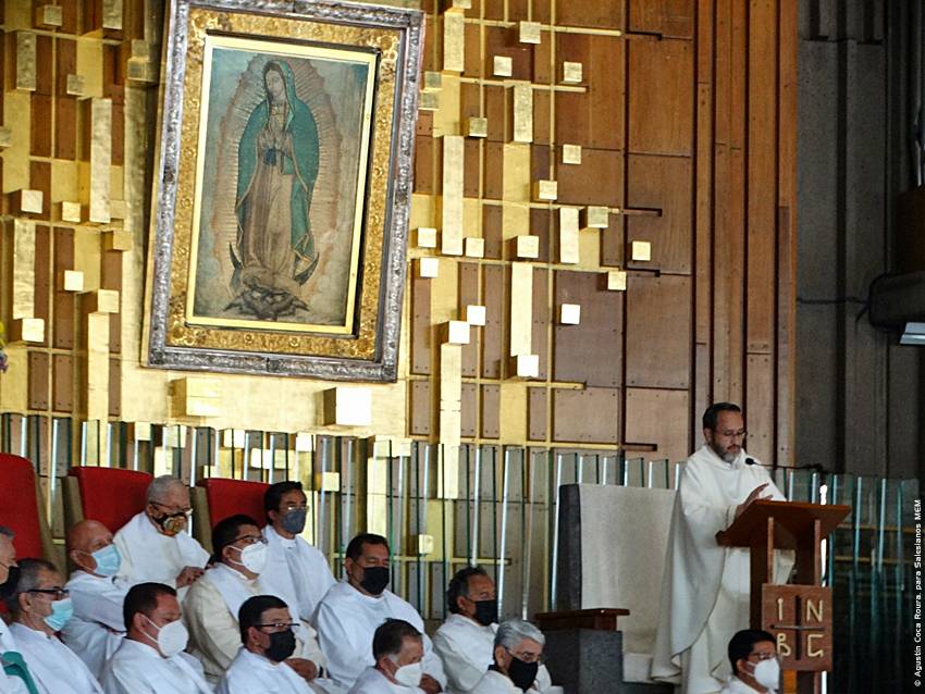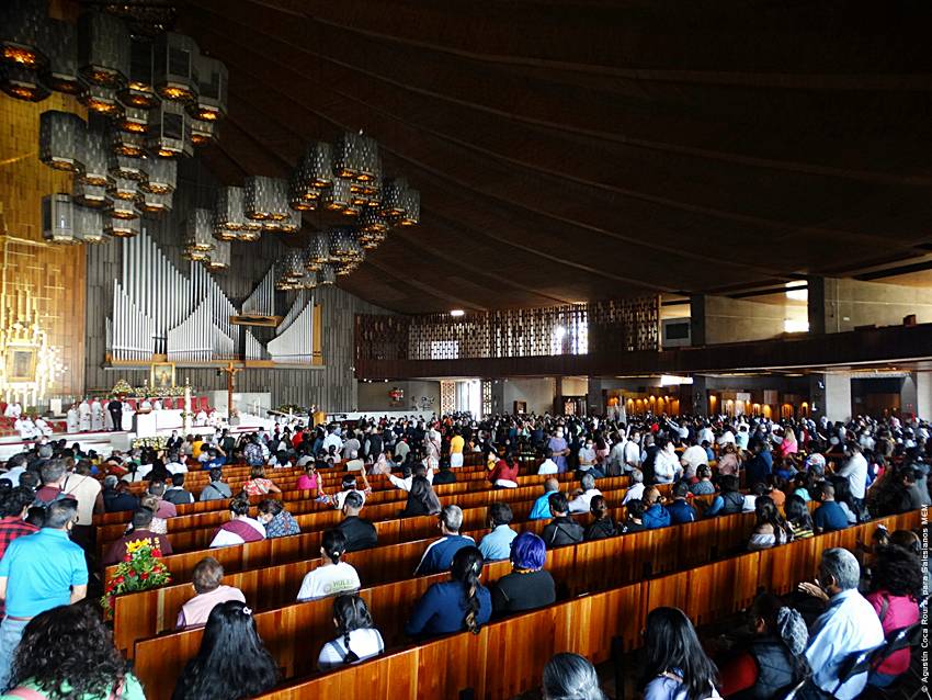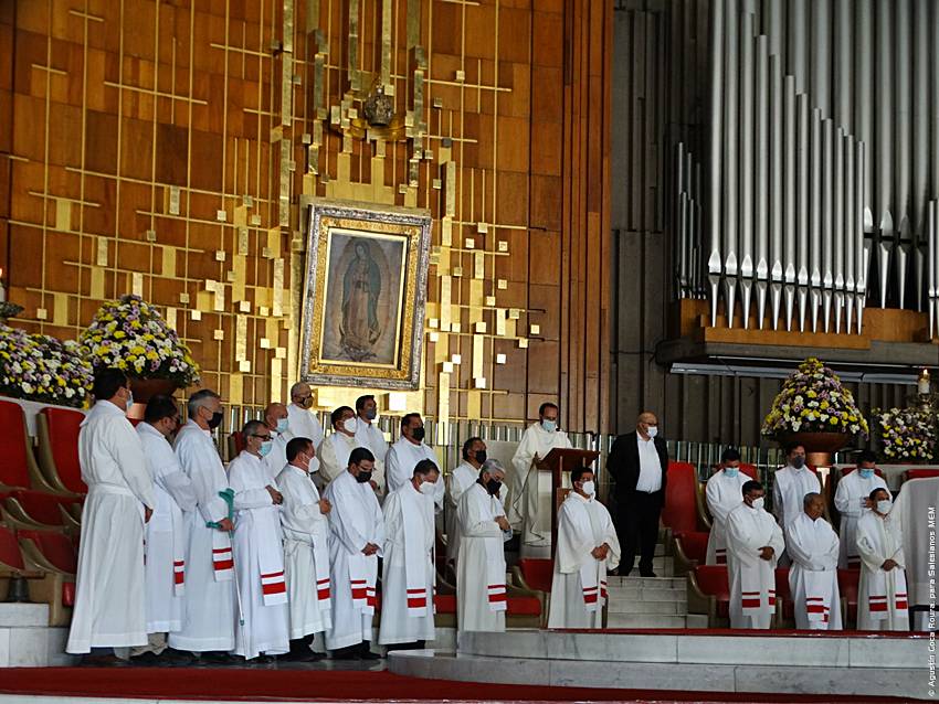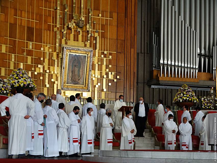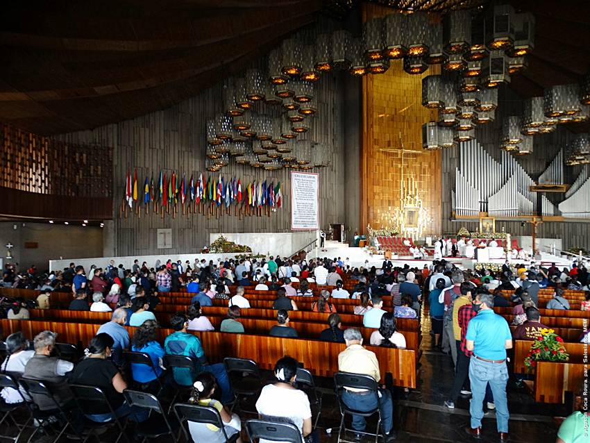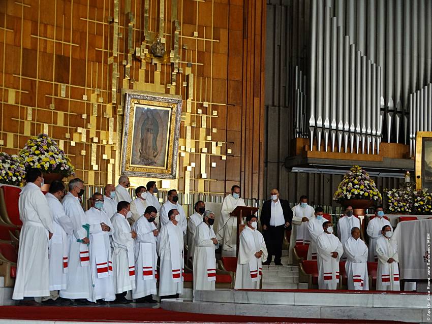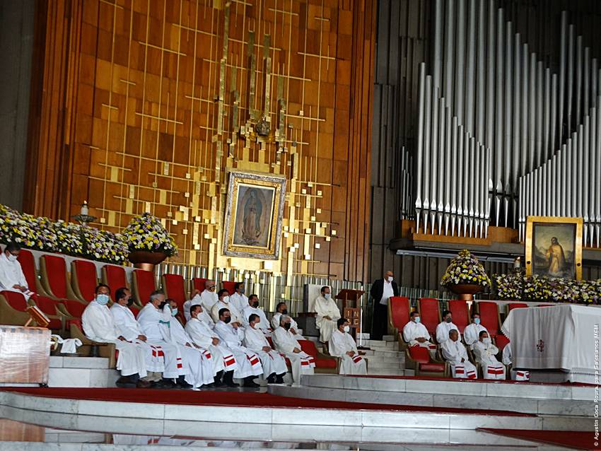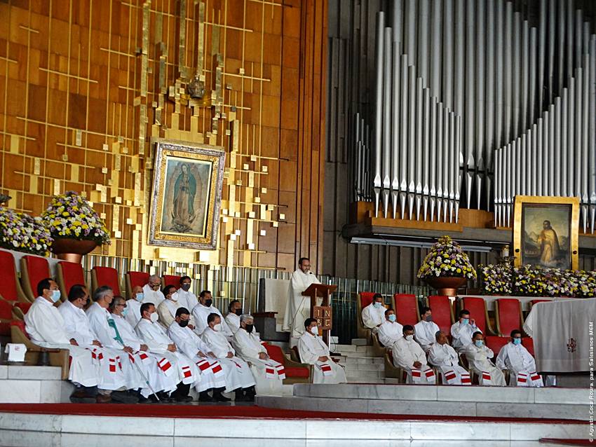 Cerca de las 10:10 y tras congregarse en la explanada de la Basílica, las diversas delegaciones de los grupos iniciaron su ingreso al santuario mariano, a las 10:30 inicio la Solemne Misa, misma que fue presidida por el Padre Ignacio Ocampo.